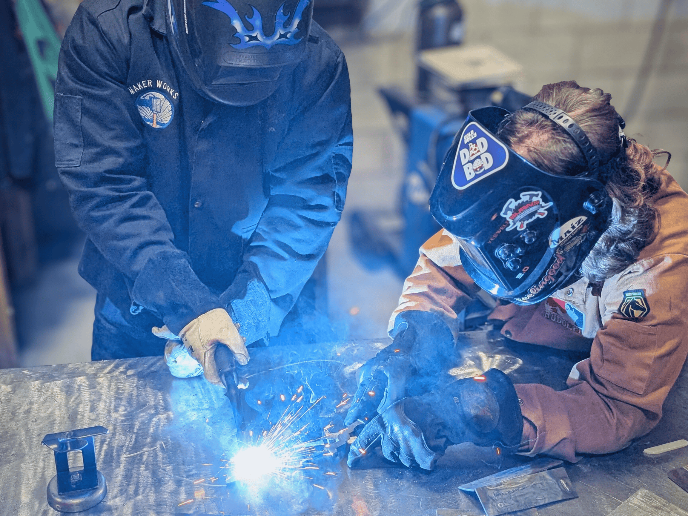Eric teaching a student how to weld in our beginner-friendly welding class