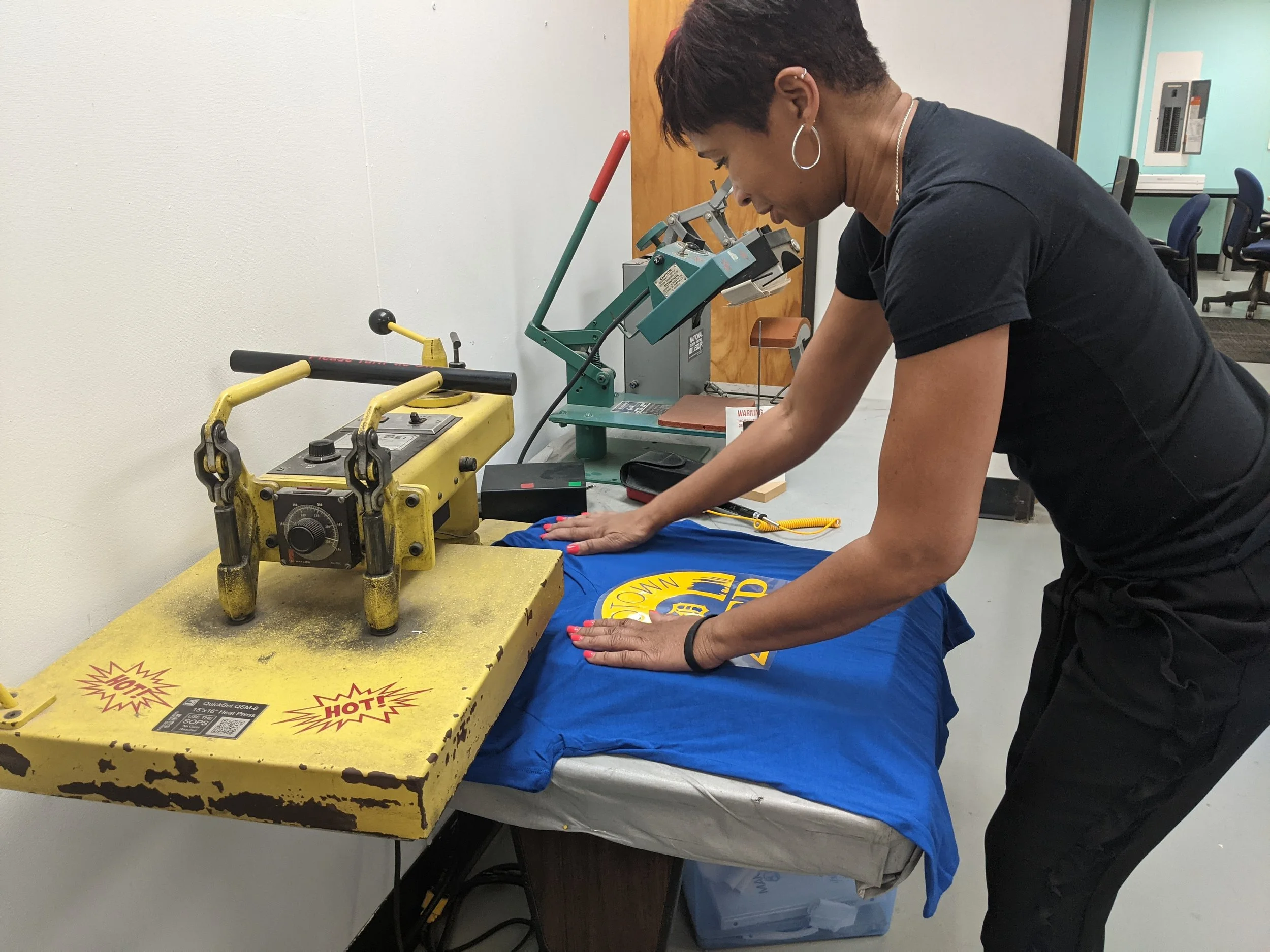 We love seeing the the robotics teams, small local sports teams, businesses, and local non profits using our vinyl cutter and heat presses!